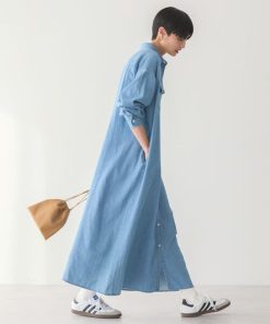 キーワード:シャツワンピース ロング 長袖 無地