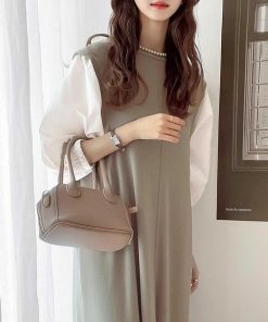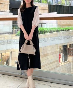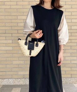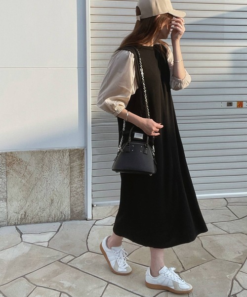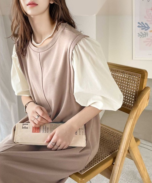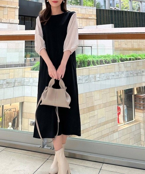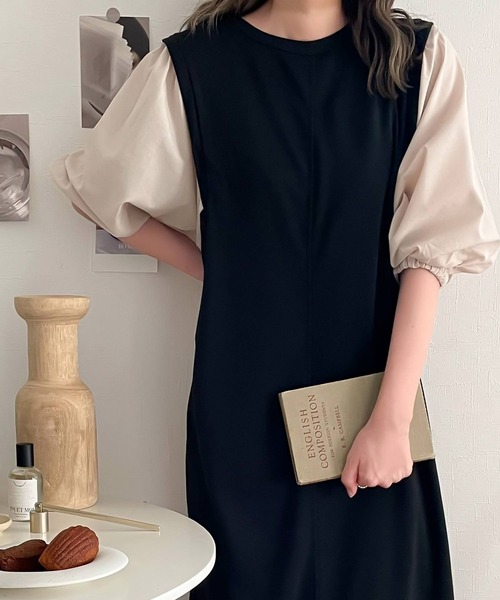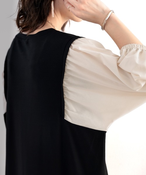 参考商品名:旬顔、ぽわん袖。異素材ドッキングワンピース