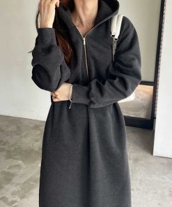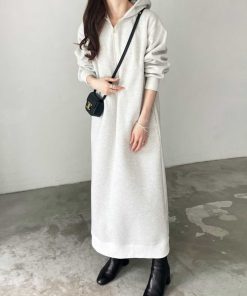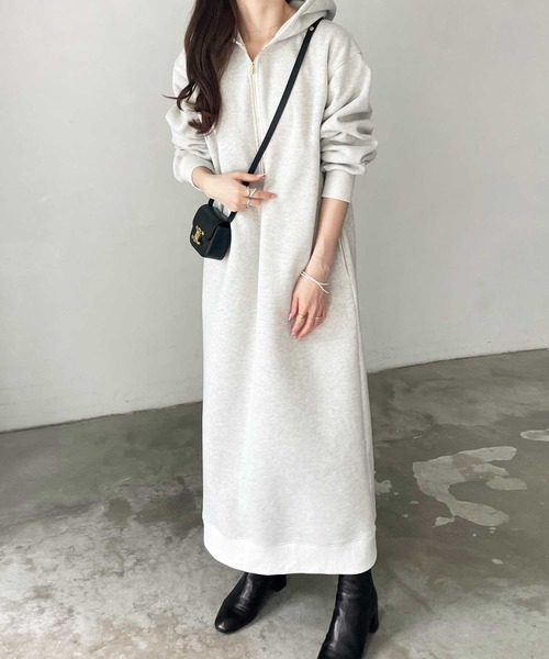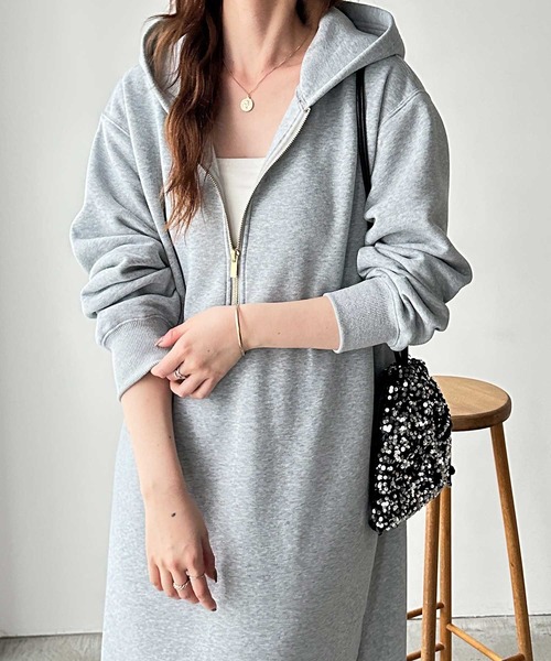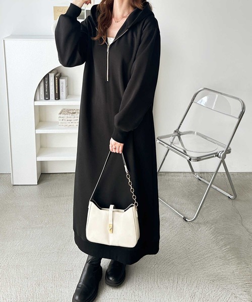 商品名:【新色追加/M-3Lサイズ】ハーフジップ裏起毛パーカーワンピース