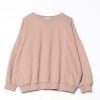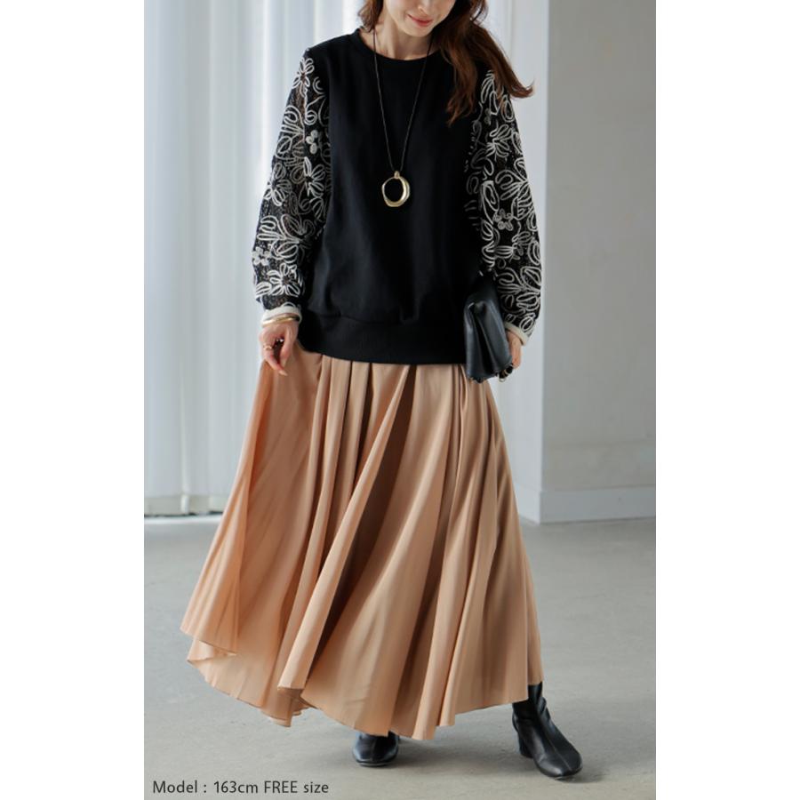 HUG.U スウェット ジャスト丈 花柄 コード刺繍 異素材 ドッキング レディース トップス ロング トレーナー オーバー プルオーバー 無地 長袖 長い