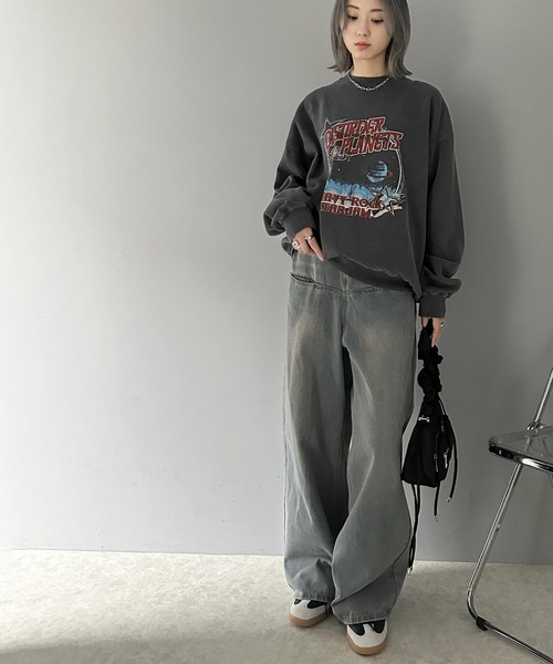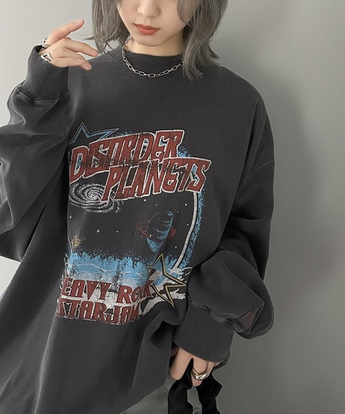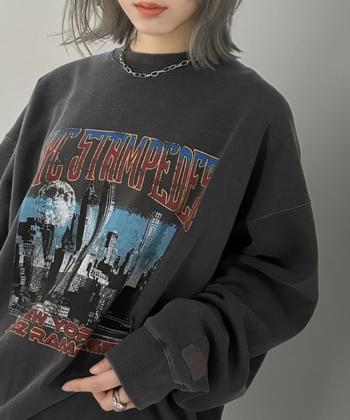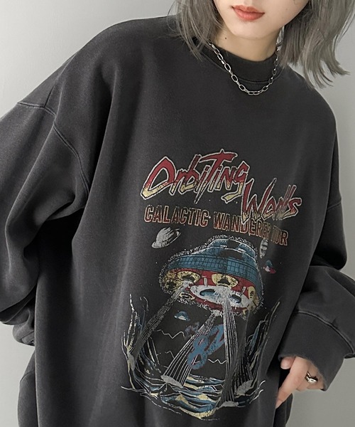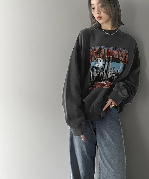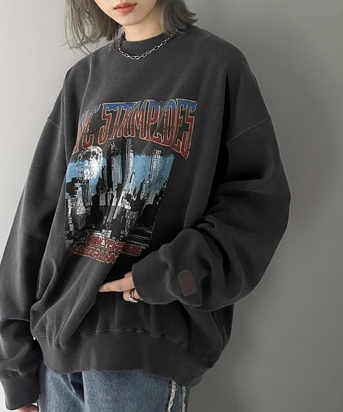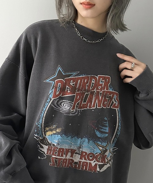 商品名:《JaVa ジャバコラボ》ヴィンテージ感でいっきに垢抜け。裏起毛ヴィンテージライクプリントピグメントビッグスウェット